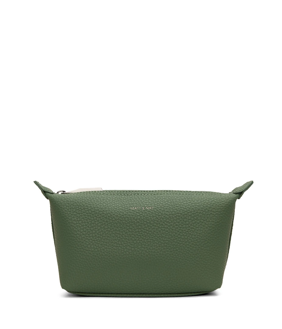 Cosmetic bag with top metal zip closure and tab detail at the zipper end.