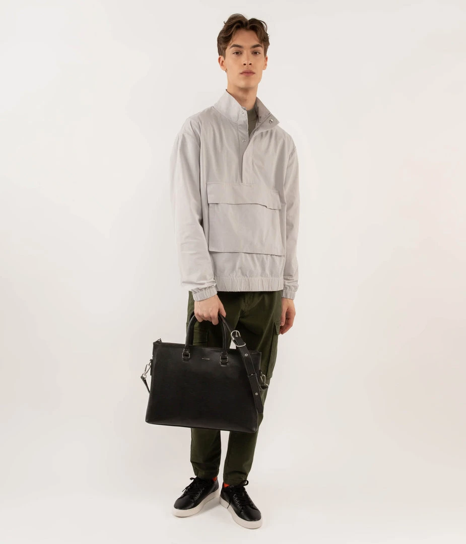 - Interior: 13” laptop padded sleeve, smartphone pocket, 2 pen slots.