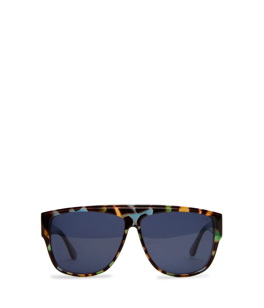 Geometric shape frame sunglasses with polarized lenses.