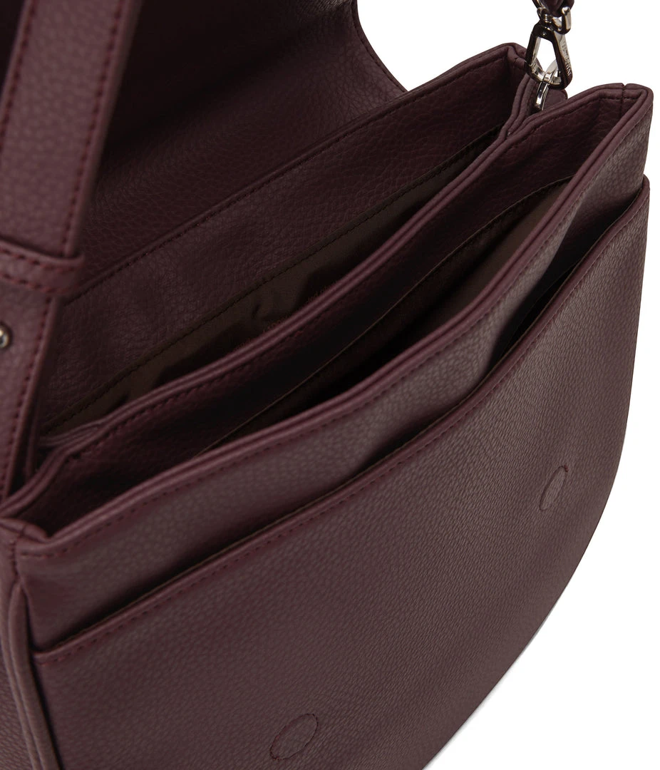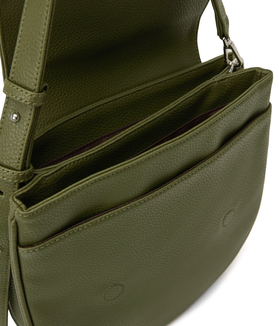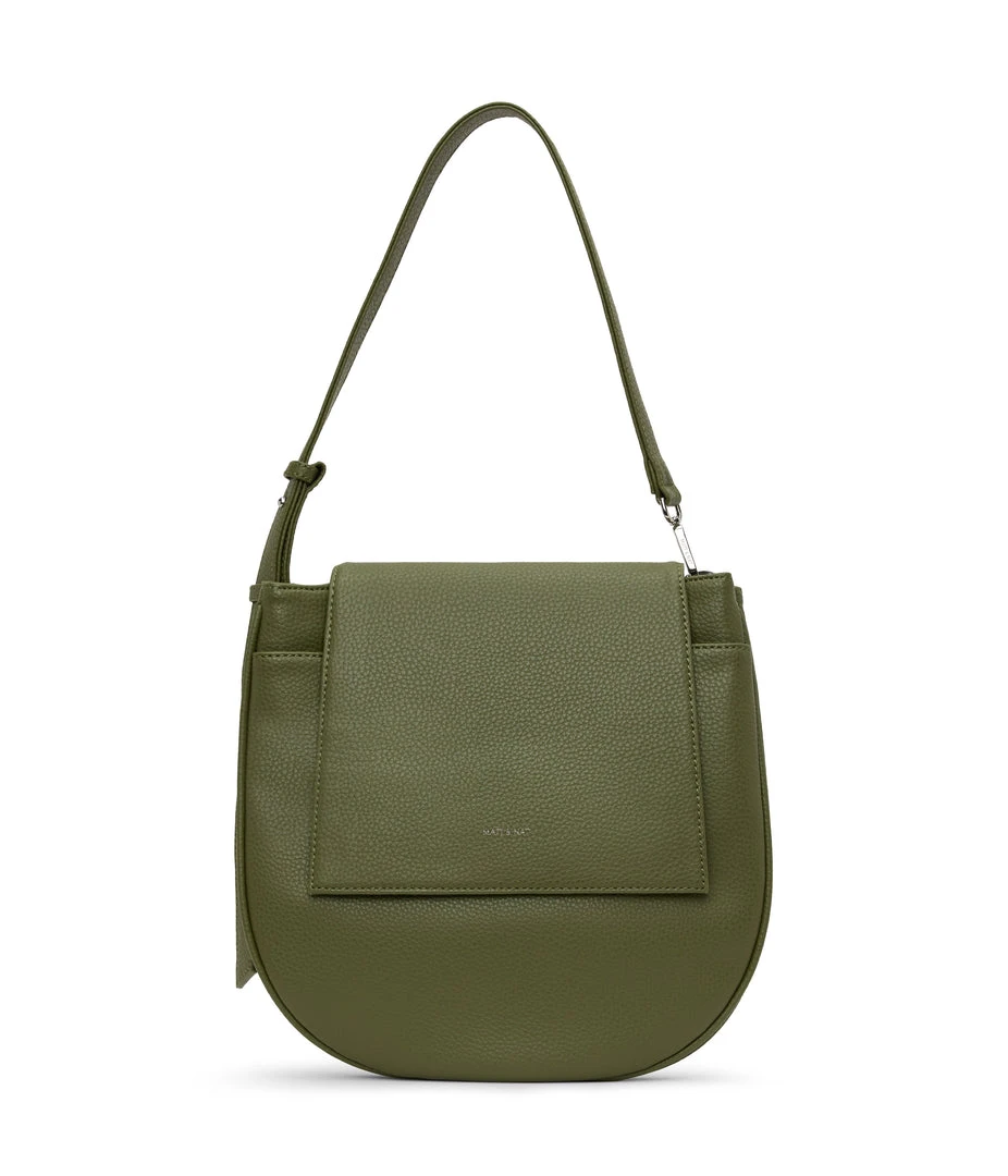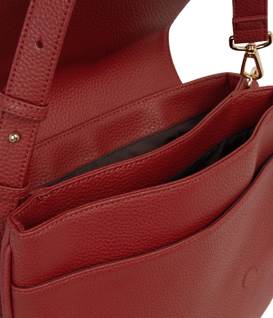 Slim shoulder bag with adjustable strap, flap closure with double compartment and a front slip pocket. Comes with an extra adjustable crossbody strap.
