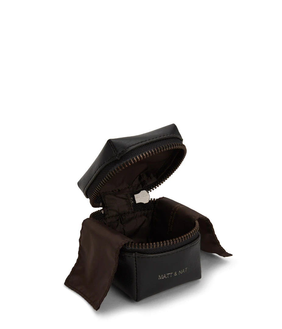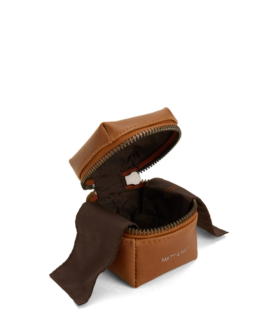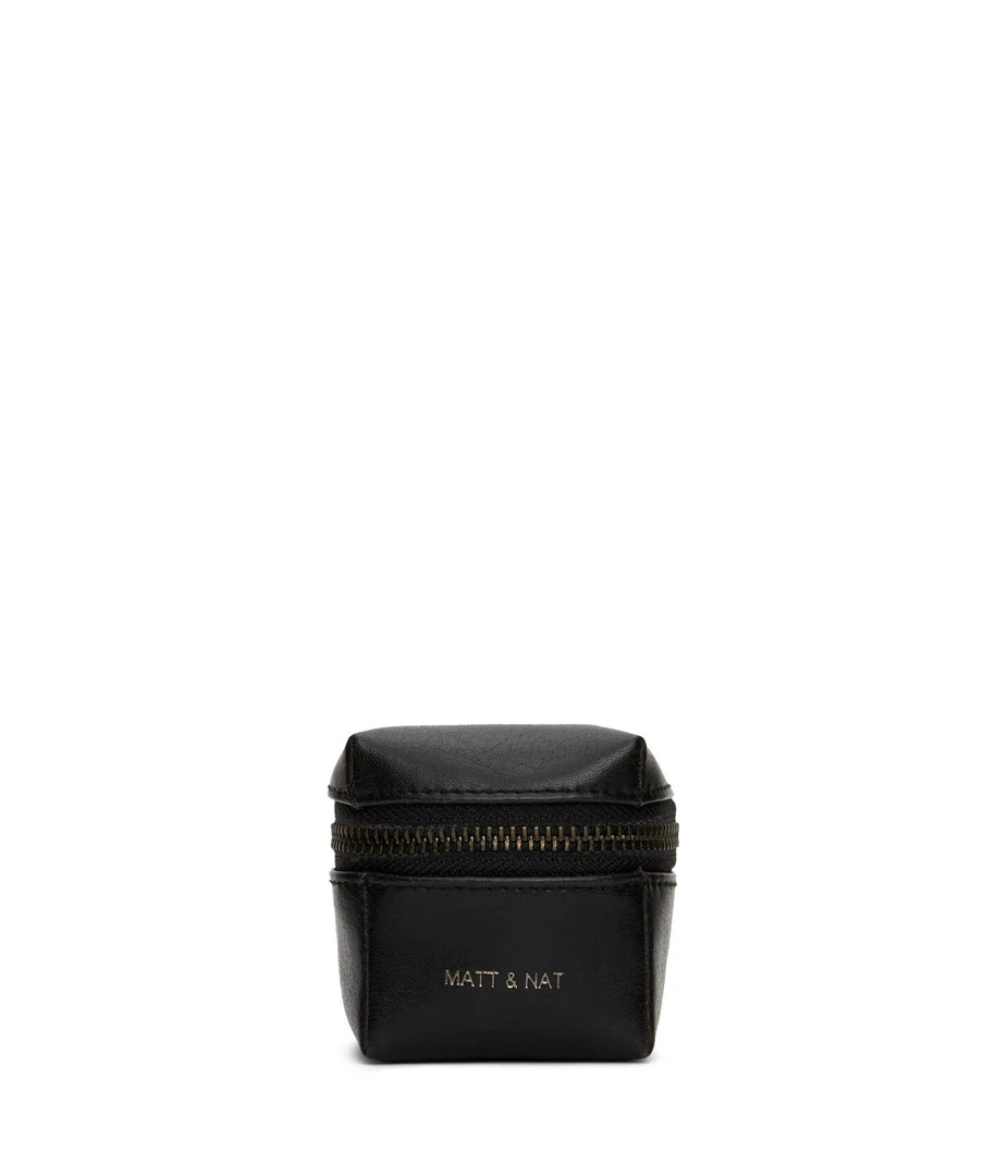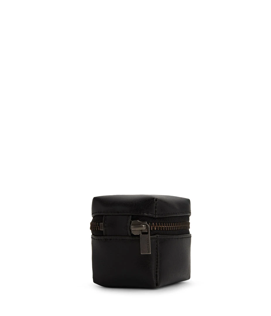 Small jewelry box with all-around zipper closure and extra lining to protect the jewelry.