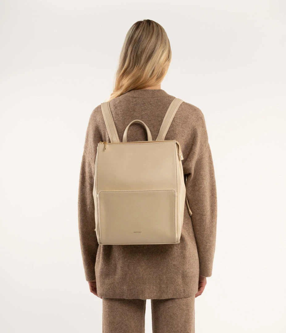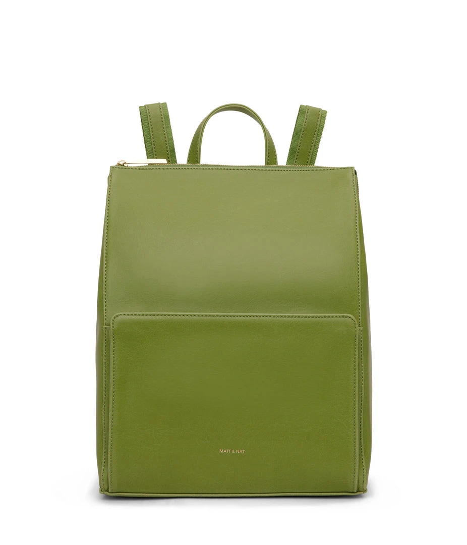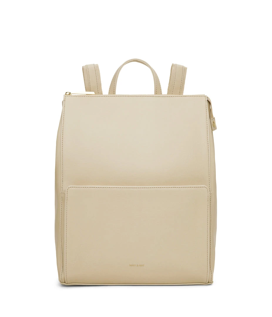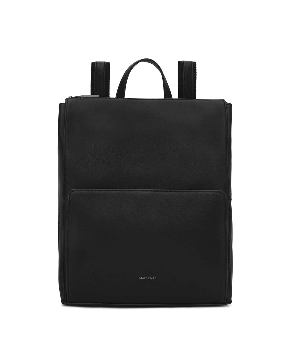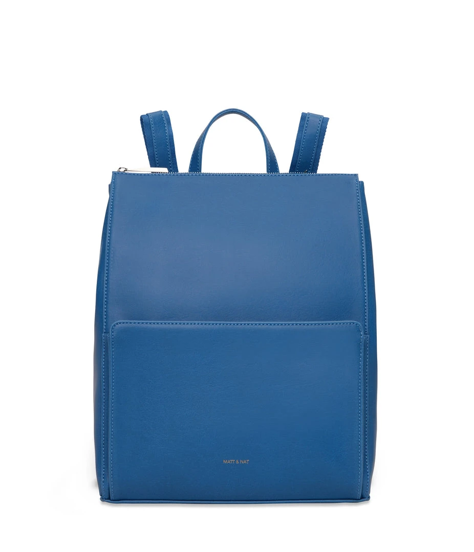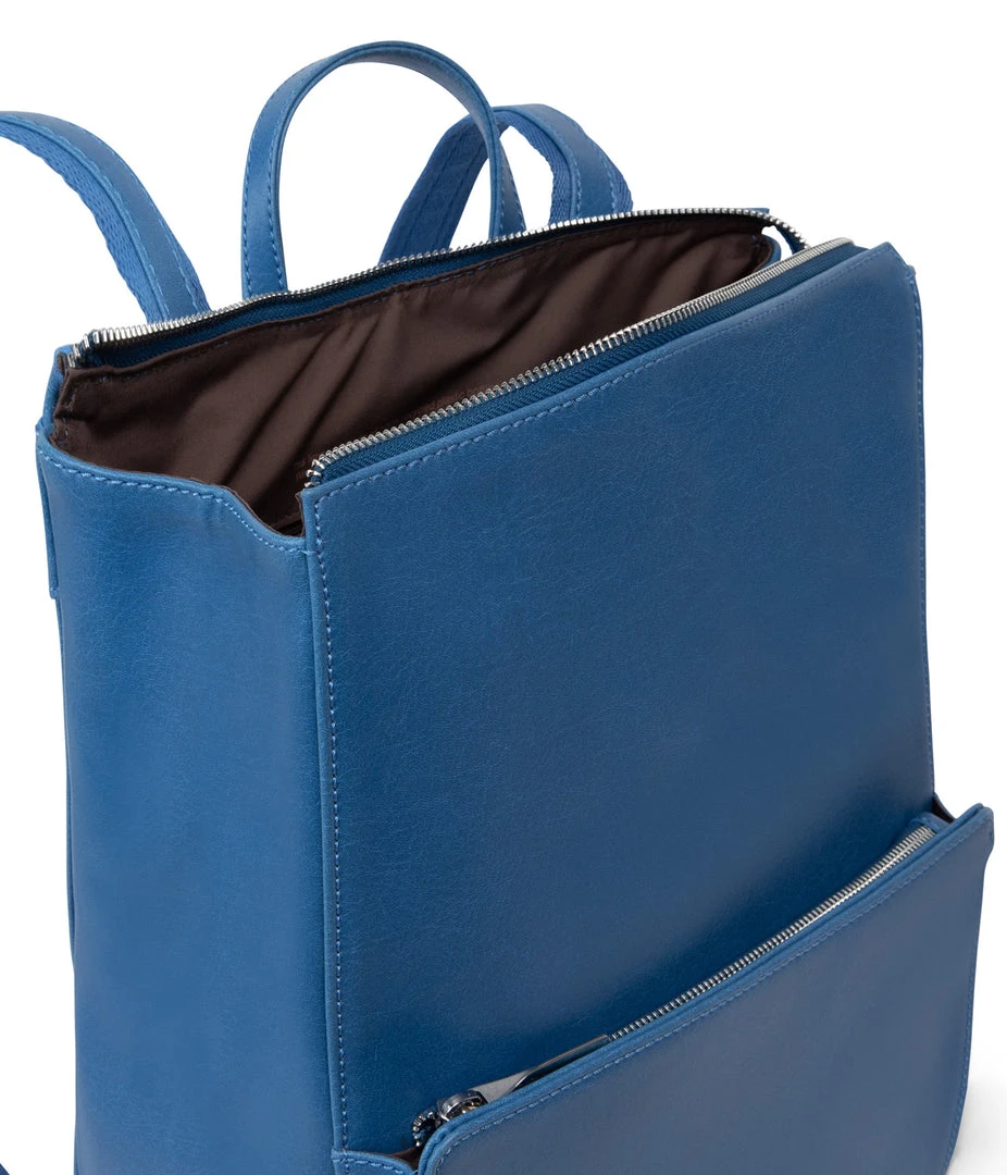 Backpack with zip closure, front zip pocket, adjustable webbing straps, and a handle to hand-carry. Fits a 13″ laptop.