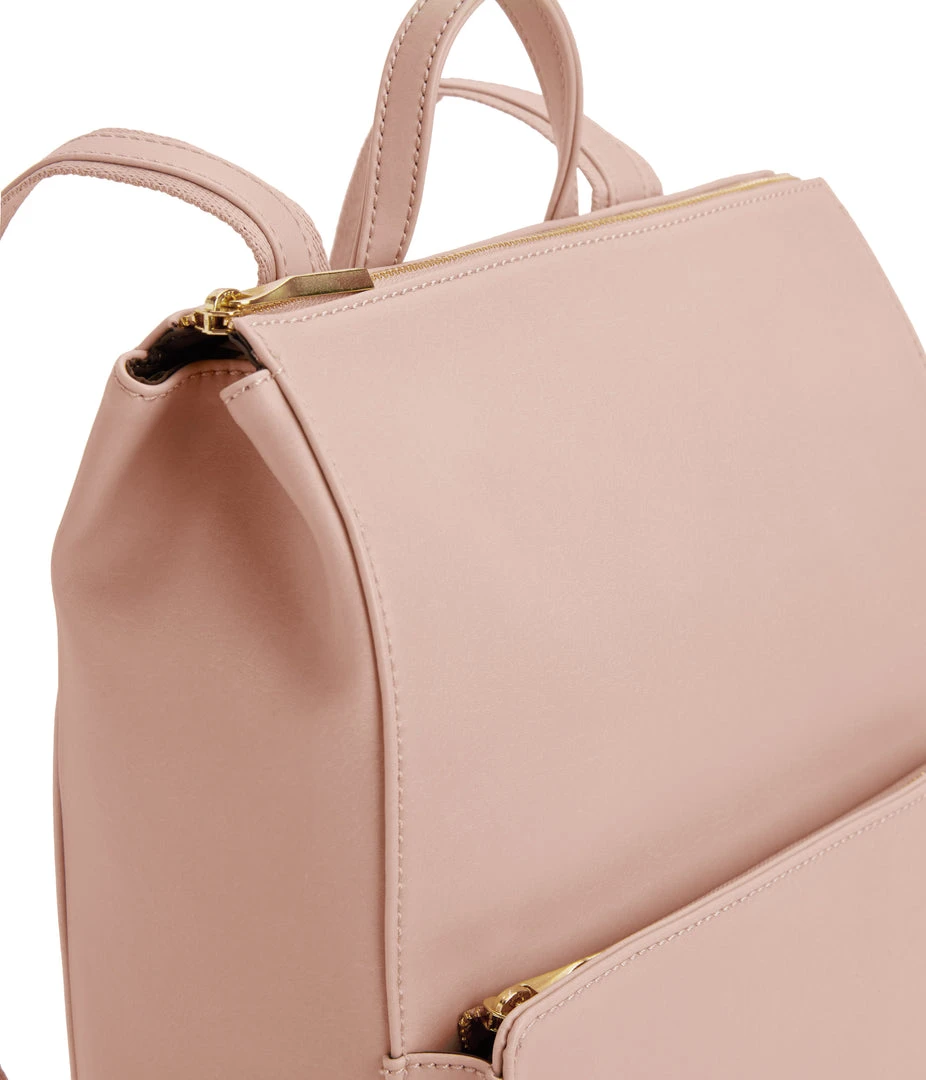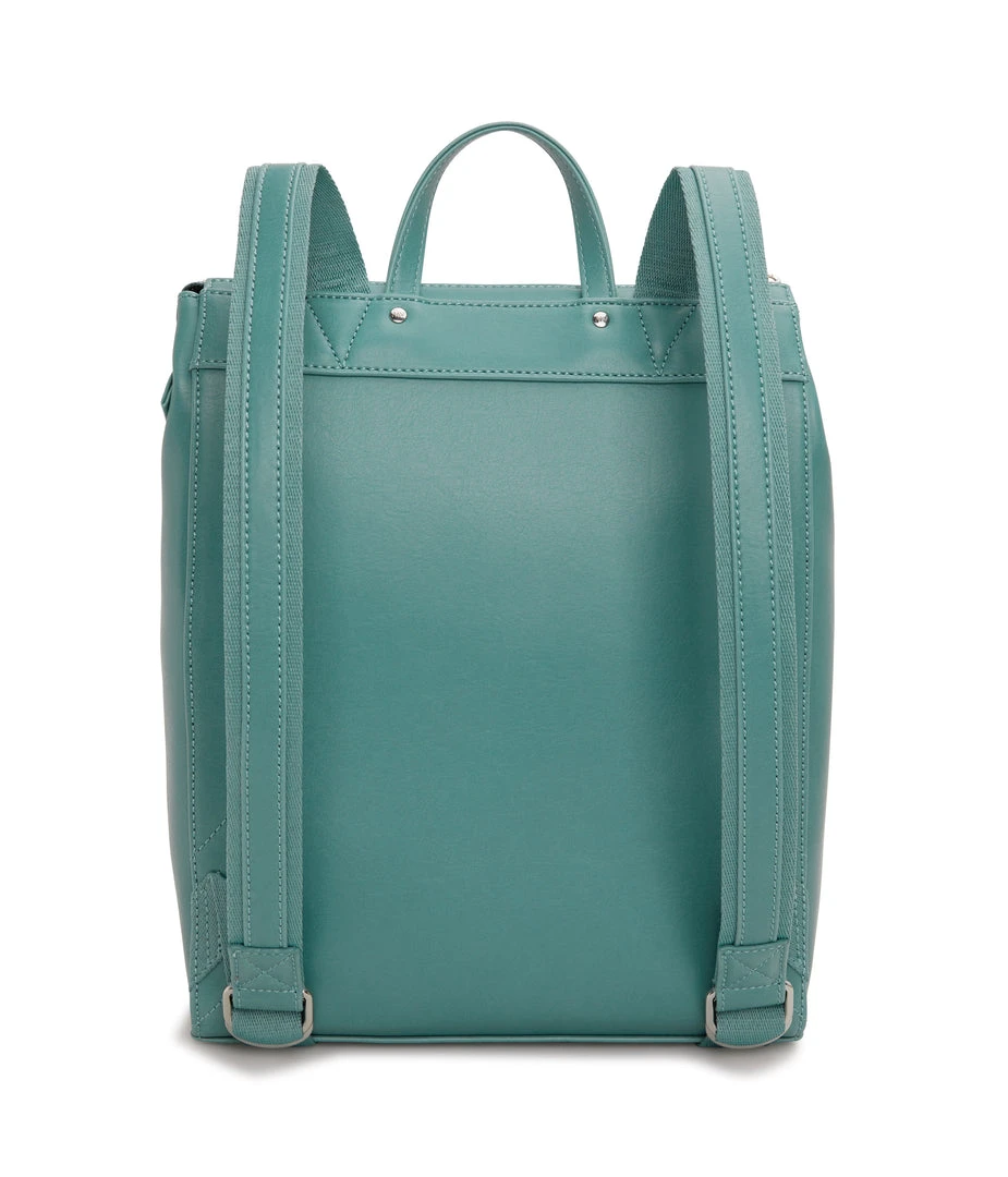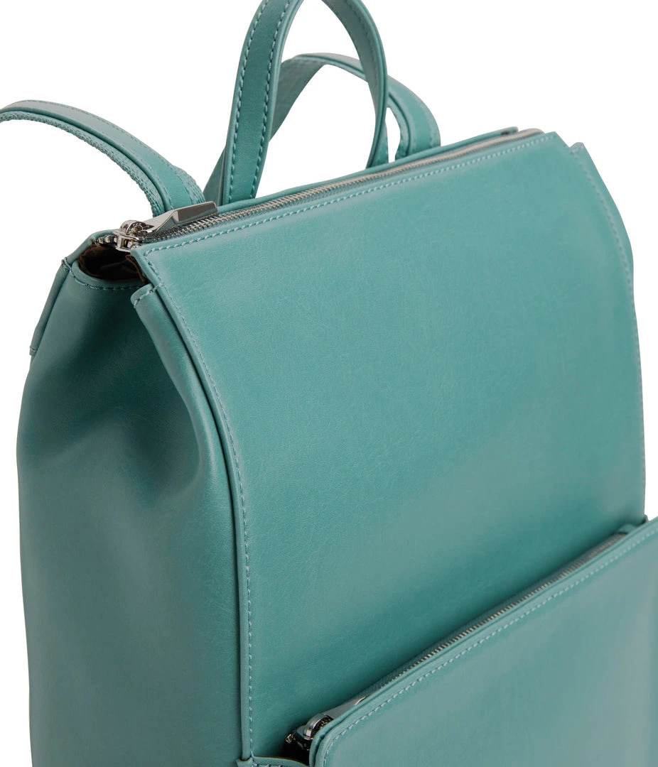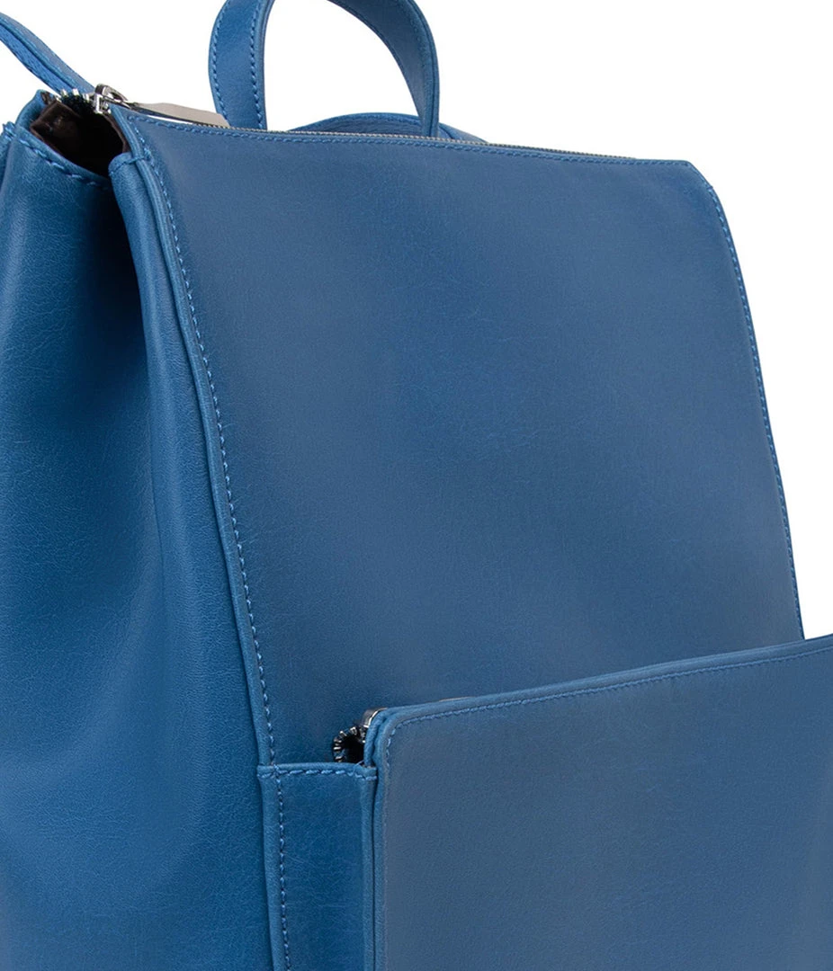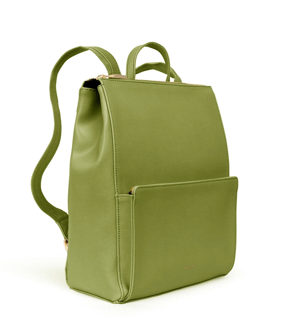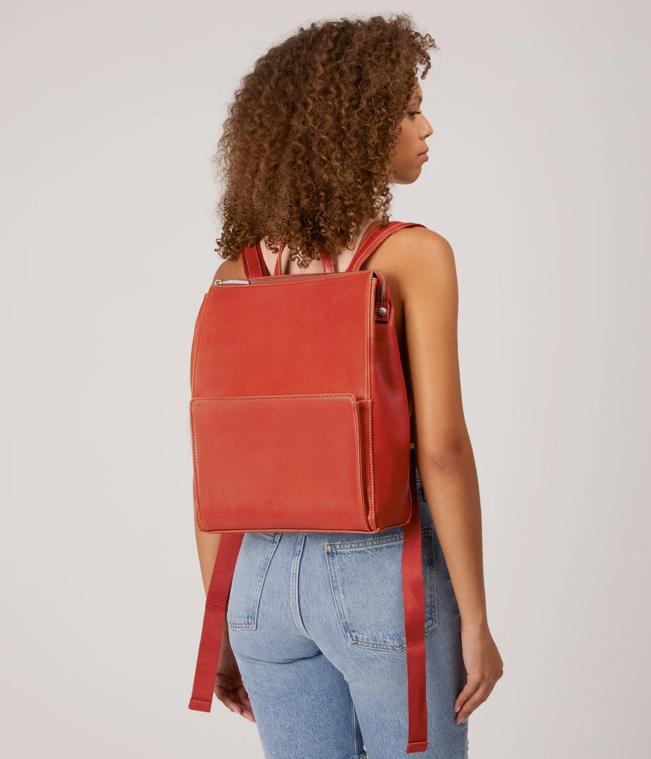 Backpack with zip closure, front zip pocket, adjustable webbing straps, and a handle to hand-carry. Fits a 13″ laptop.