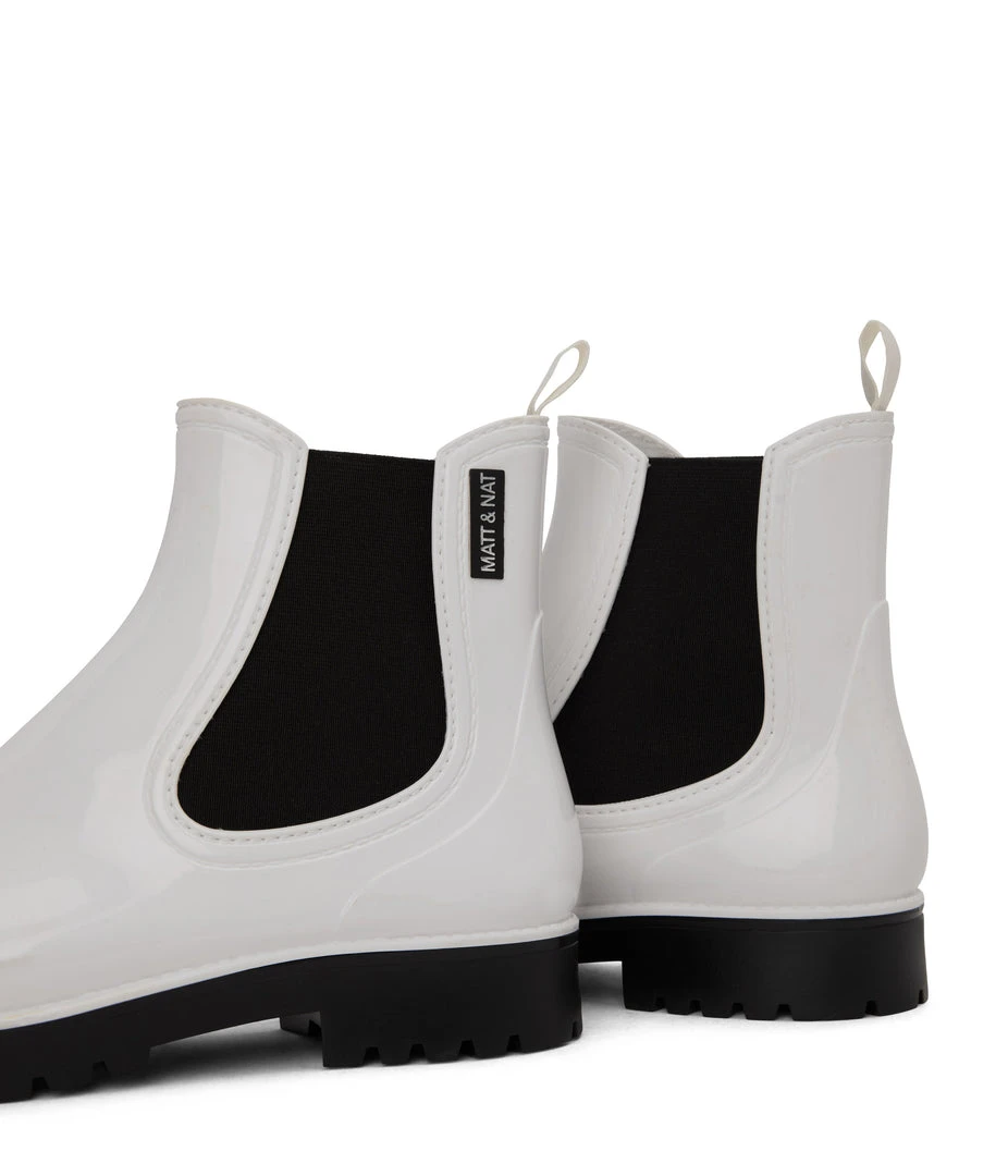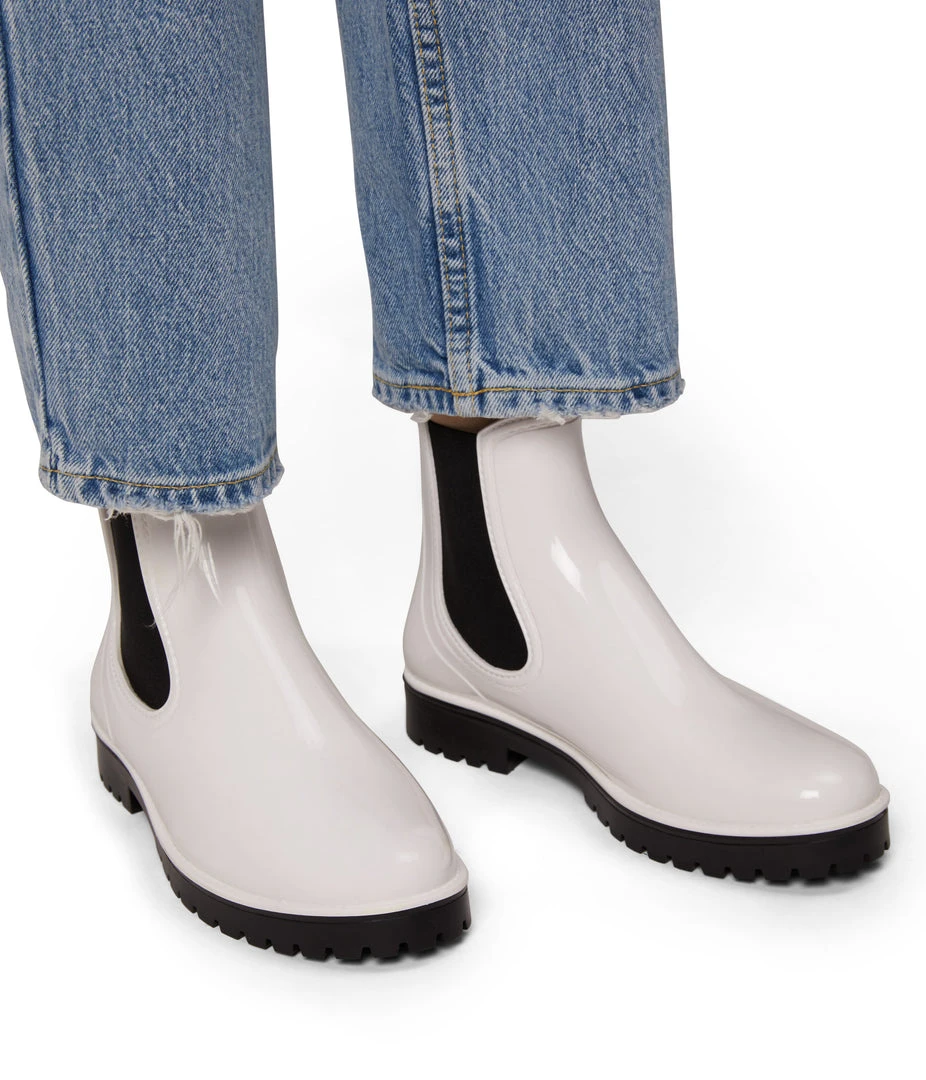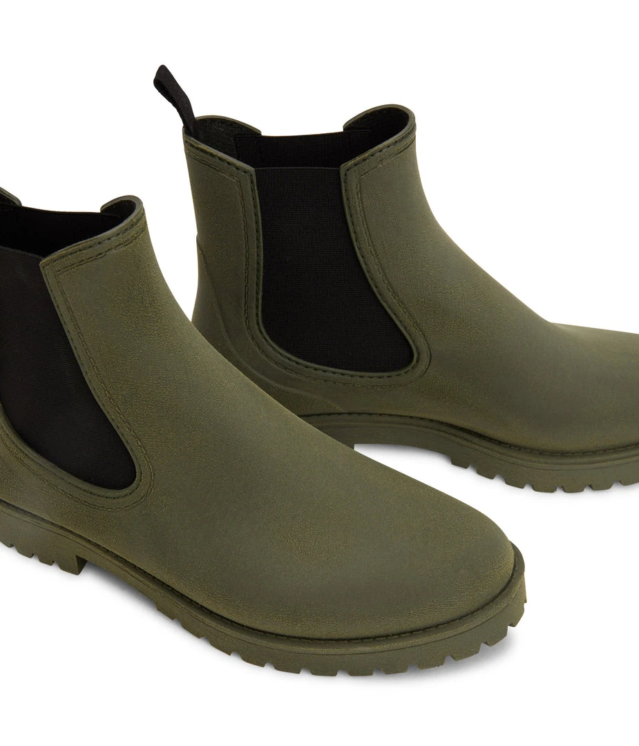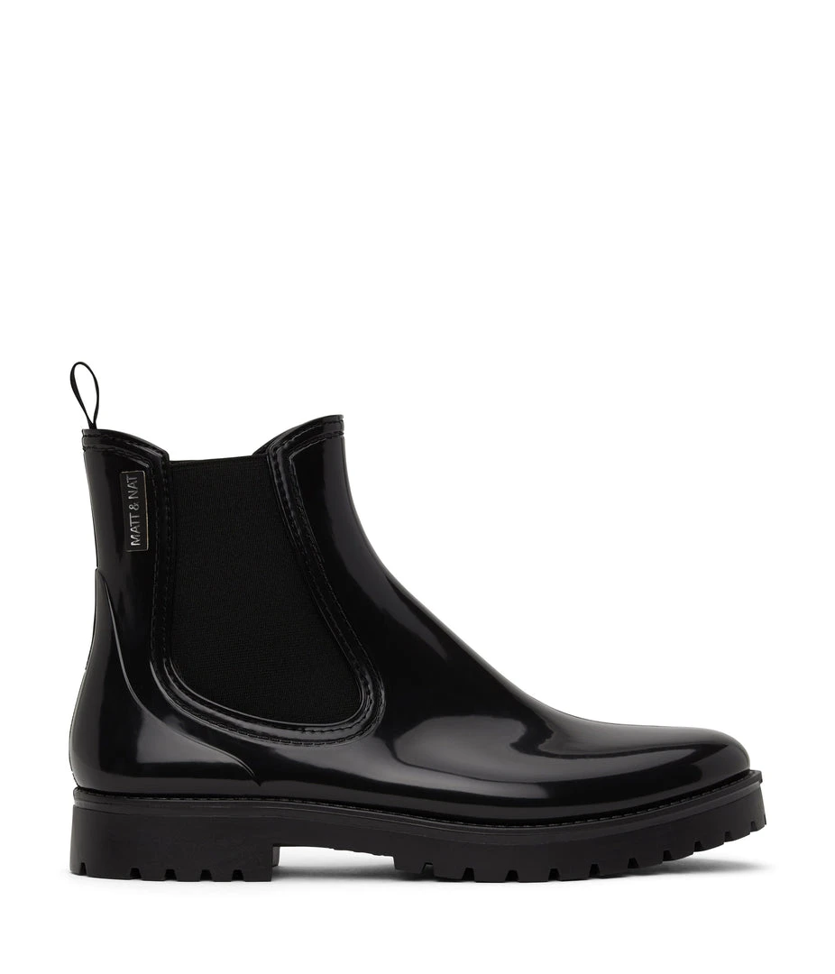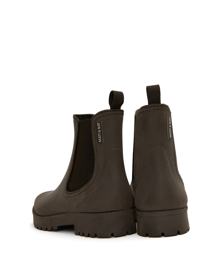 Women’s waterproof brushed rainboot with a contrast outsole and MATT & NAT logo detail.