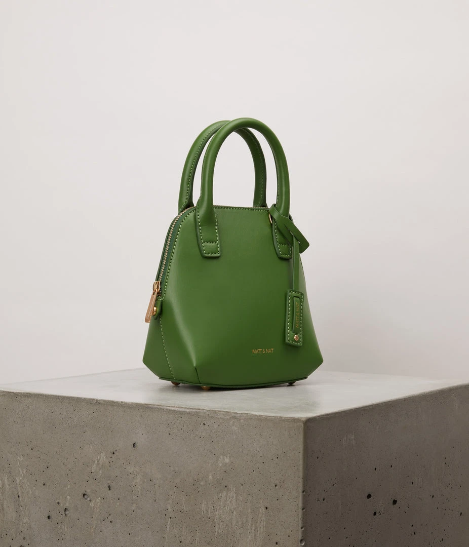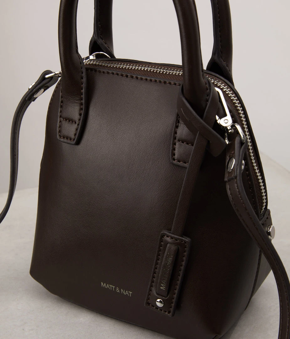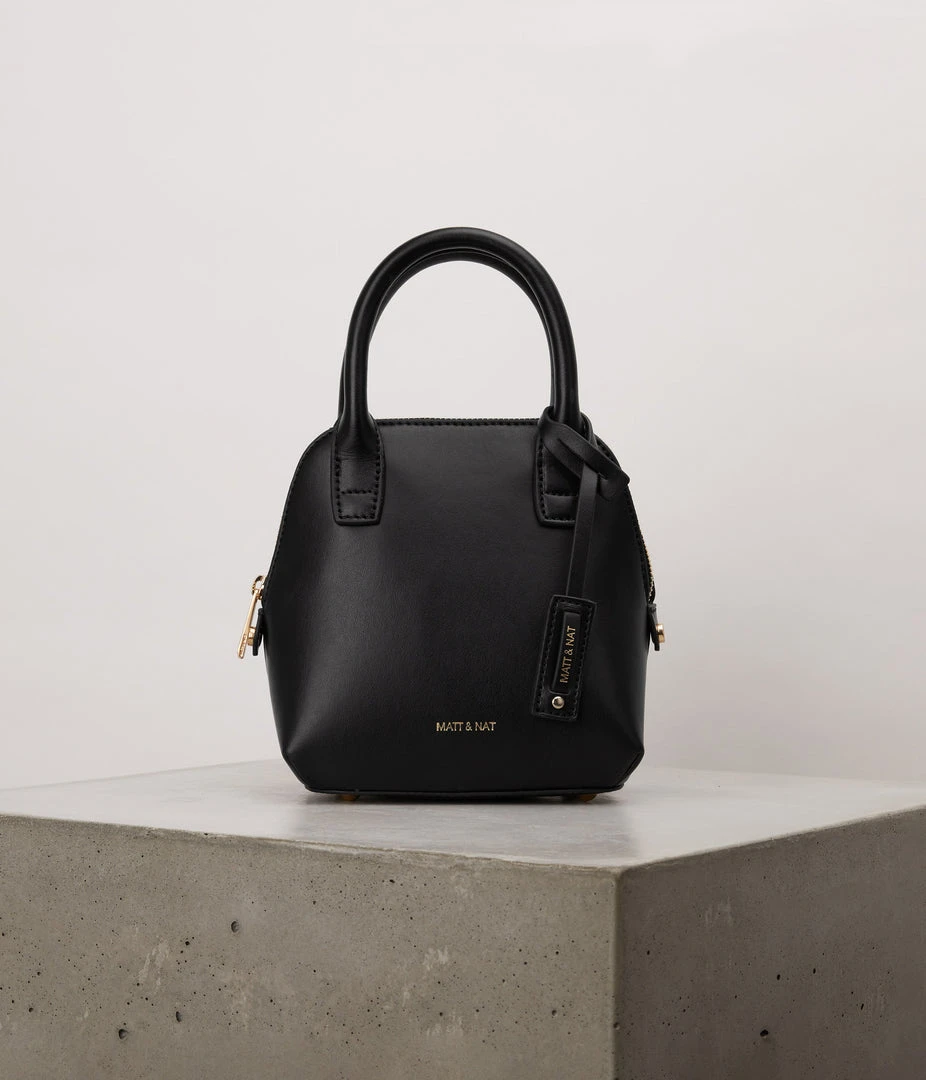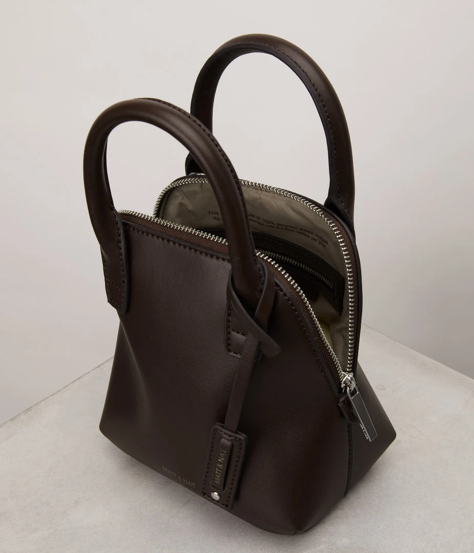 Mini satchel with zipper closure and protective metal feet at the base of the bag, removable branded tag, and an adjustable and detachable shoulder strap. Also available in sizes GESSI PICO and GESSI MICRO.