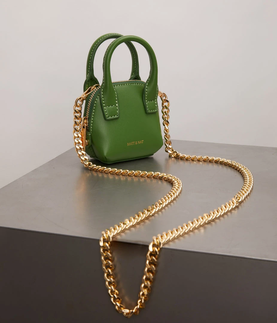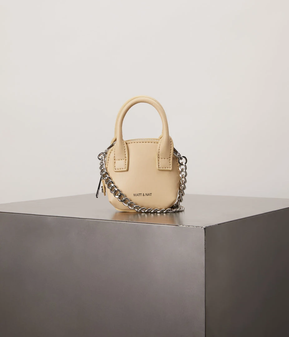 Pico-sized crossbody bag with zipper closure and removable chain strap. Fits credit cards, keys, and other small essentials. Also available in sizes GESSI MICRO and GESSI MINI.