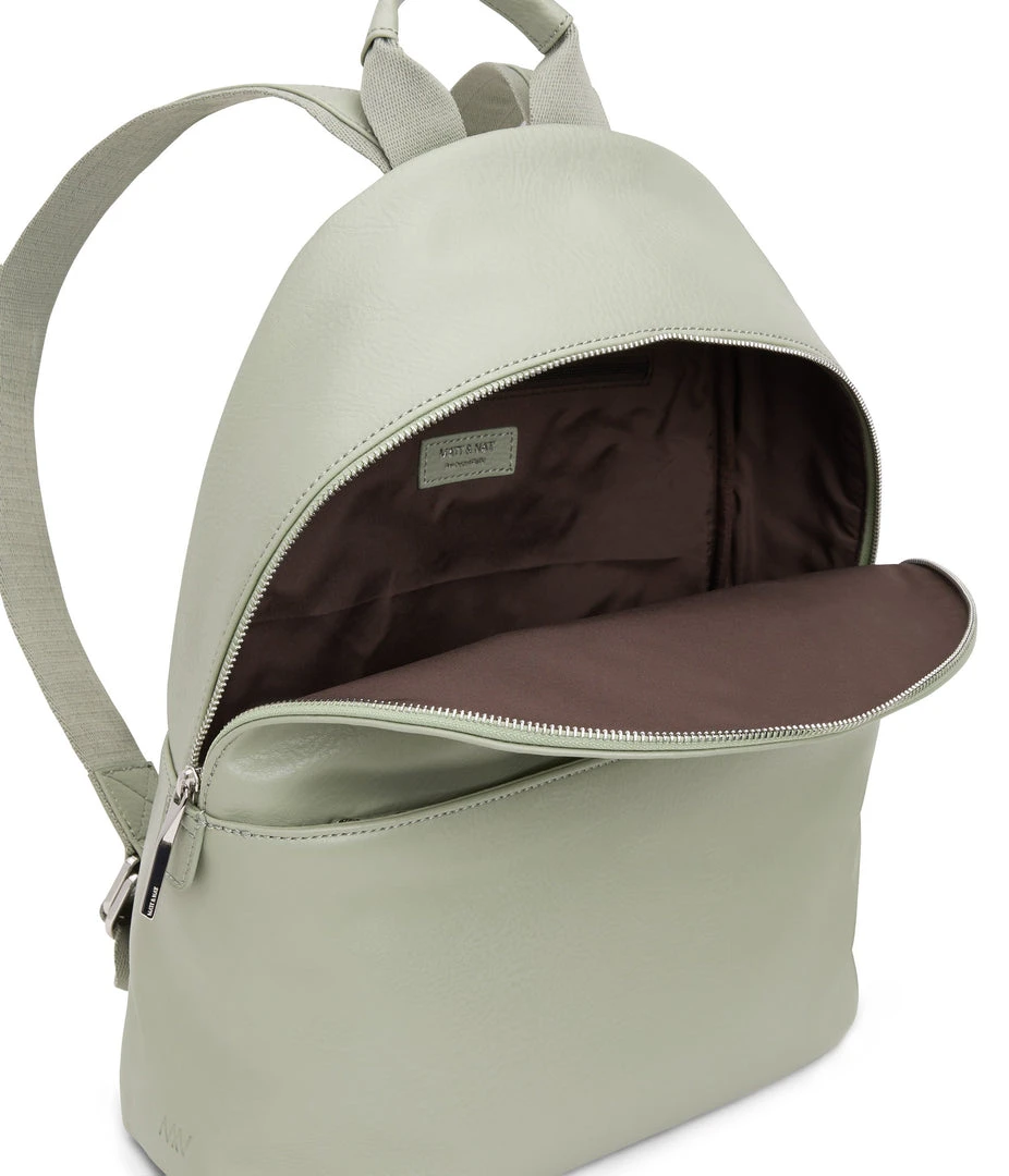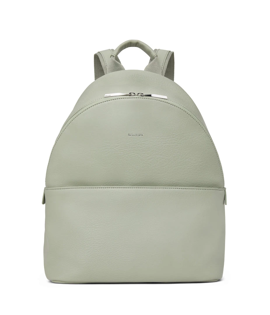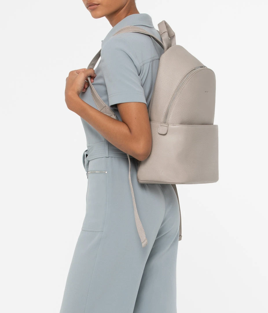Backpack with top zipper closure and front zipper pocket. Can fit a 13” laptop.