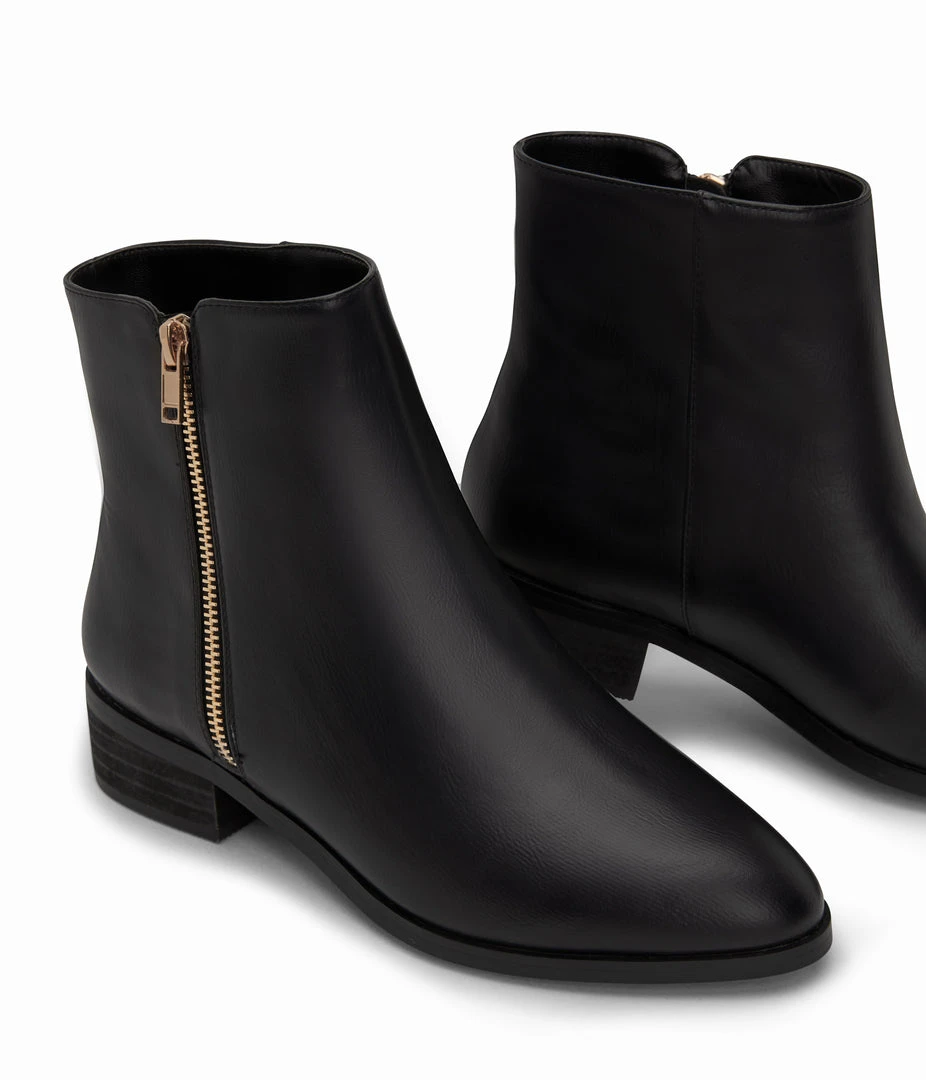 Women’s bootie with YKK zipper detail. Made with biodegradable material.