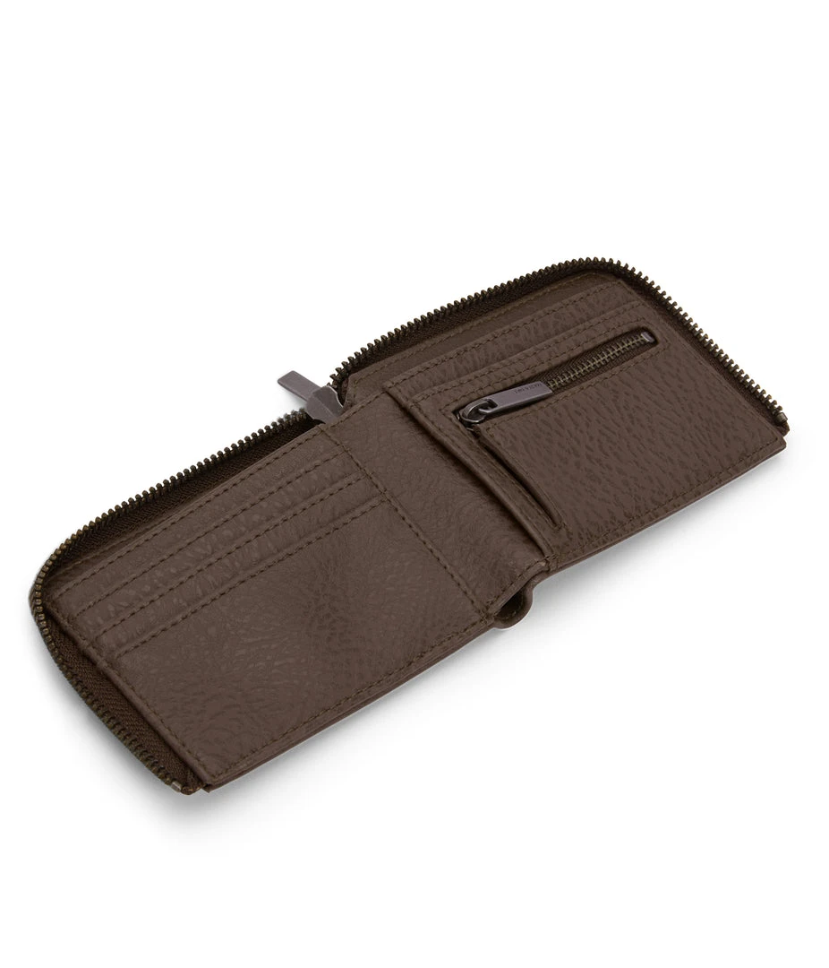 - Interior: Bill compartment, 4 credit card slots, 2 slip pockets, and metal zip coin pocket.