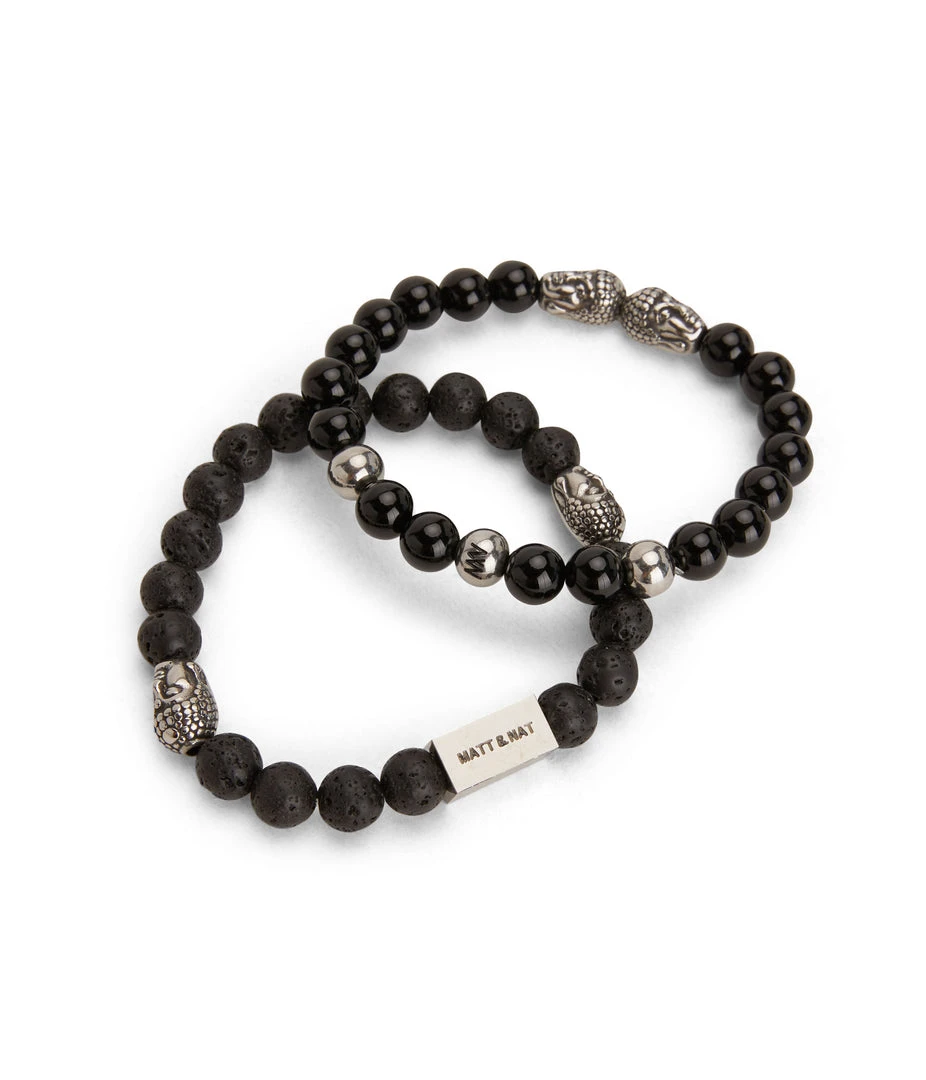 2 Pack Set – Beads: Beads in black volcanic textured stone & black natural stone.