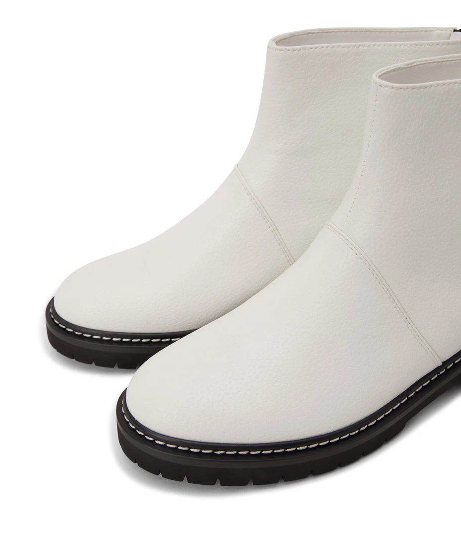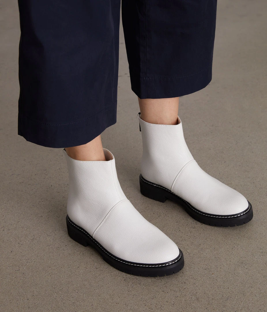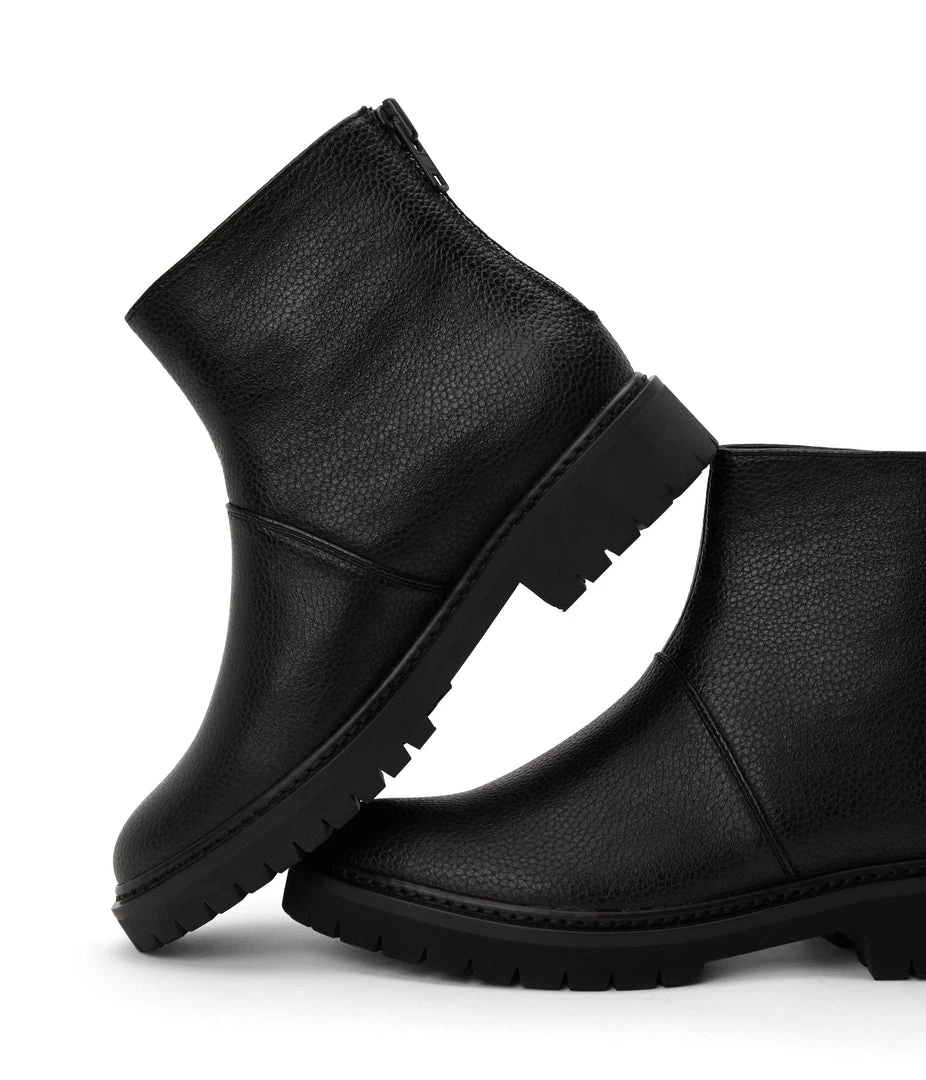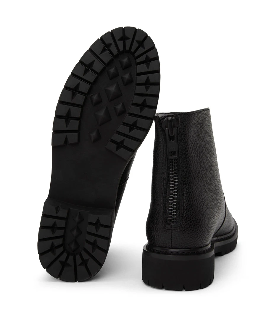 Women’s combat boot with a contrast outsole and YKK back counter zipper detail.