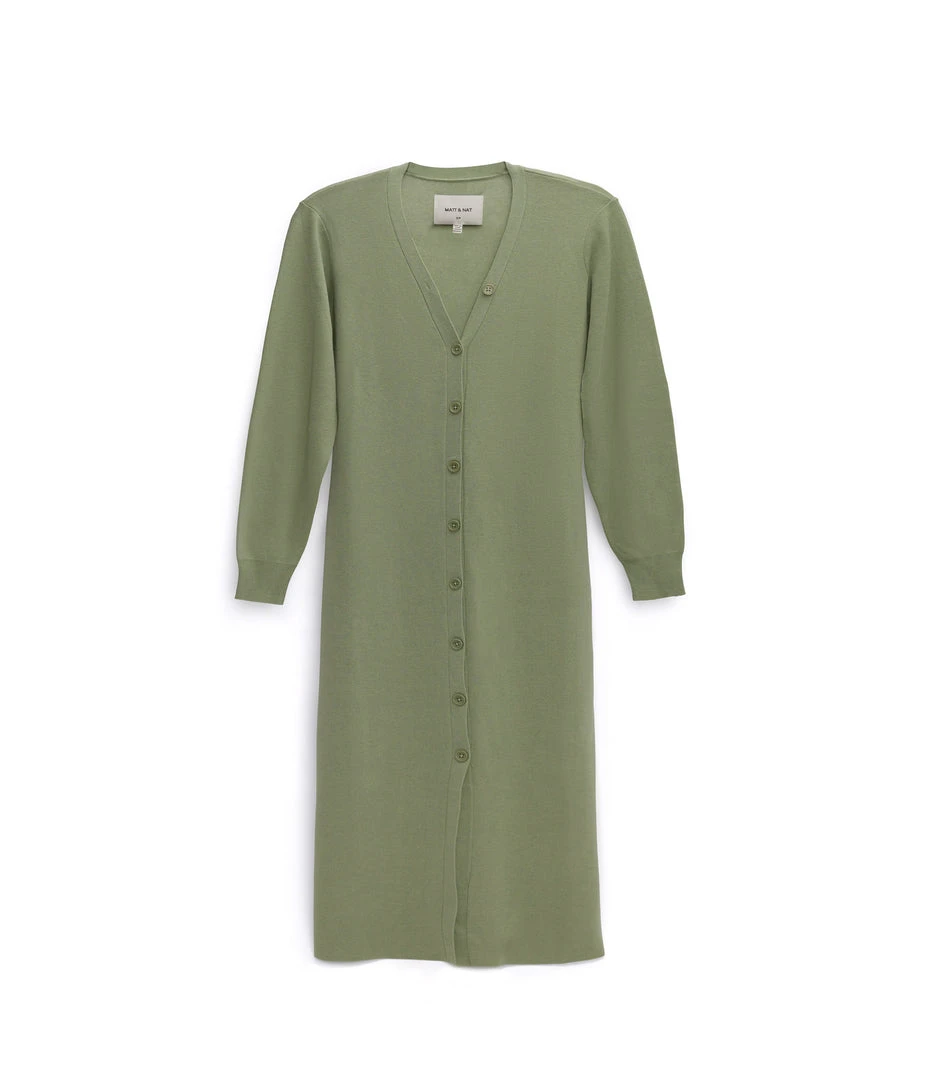 Long sleeve button front longline cardigan with v-neck and ribbed cuff finish.