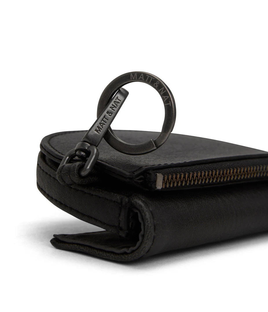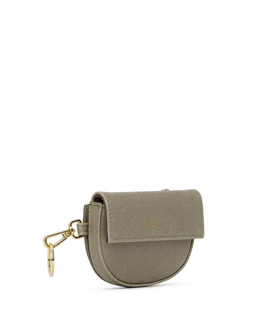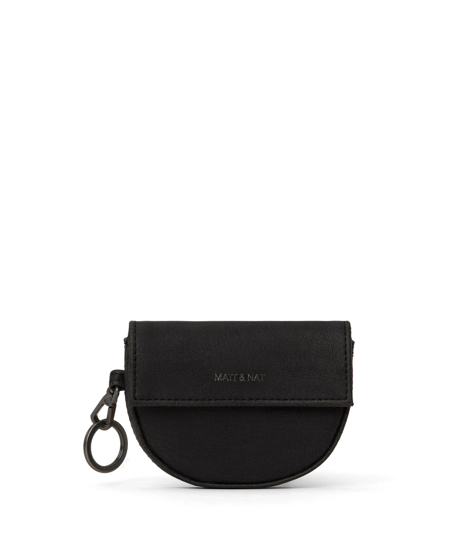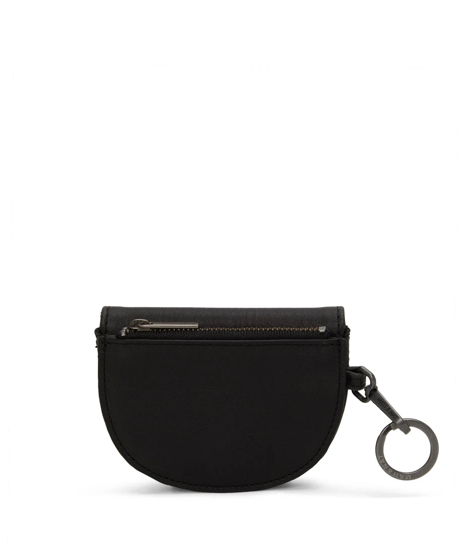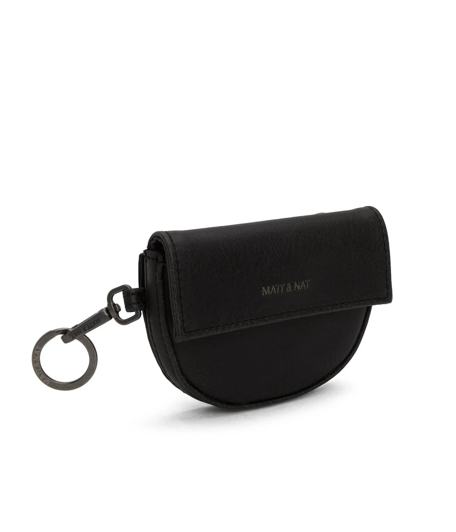 Coin purse with a dog clip and keychain feature, front card holder pocket and back zippered coin pocket.