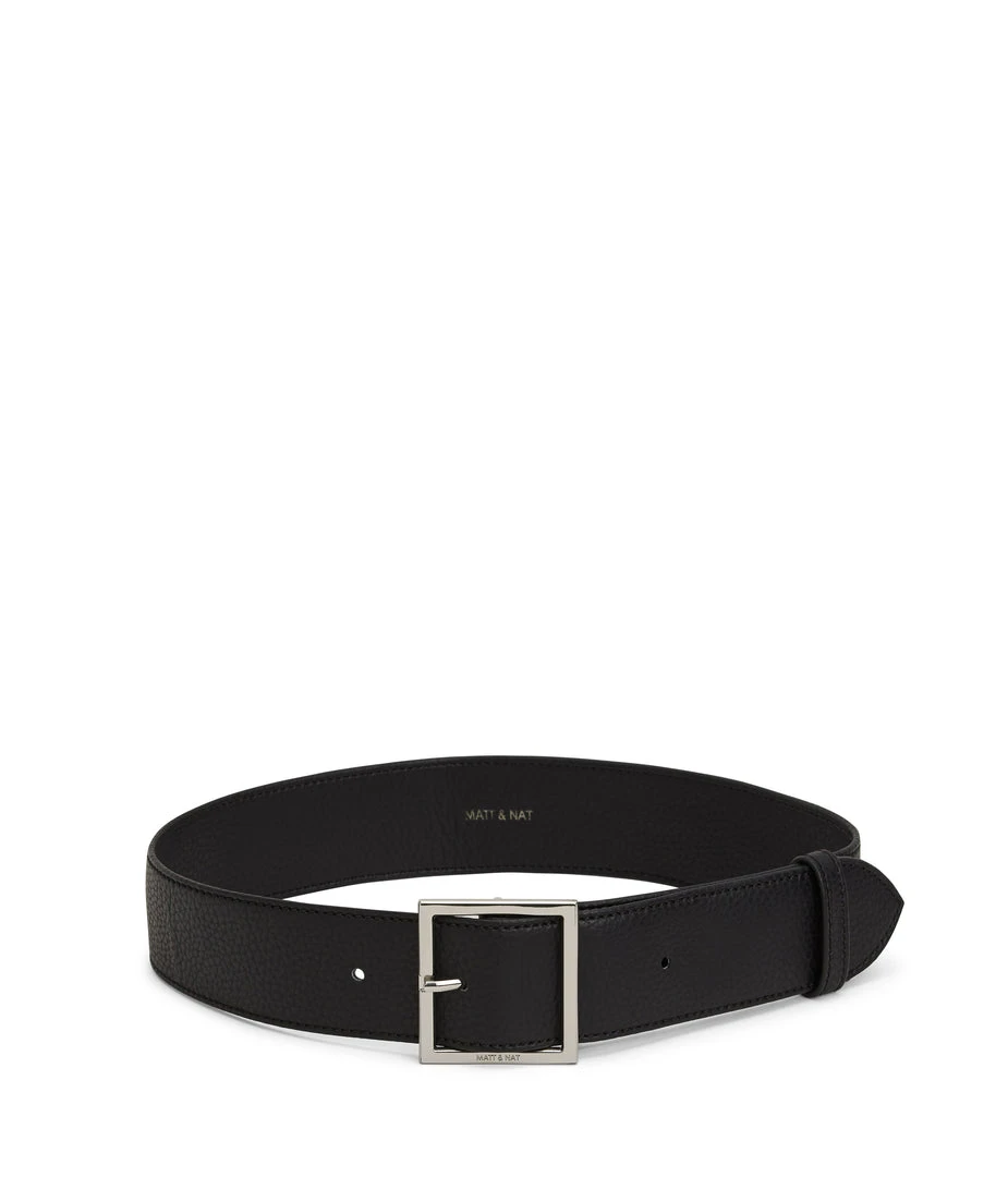 Thick high-waist belt with a square buckle.