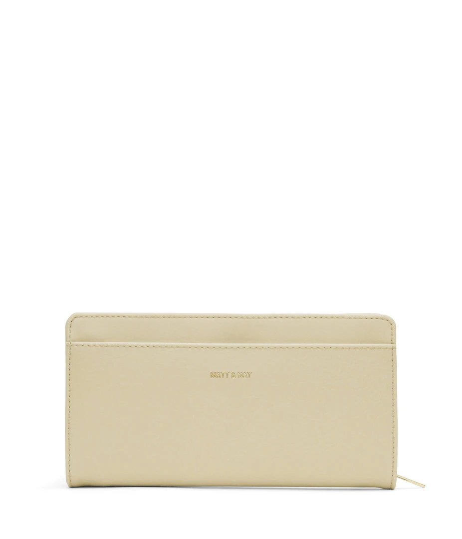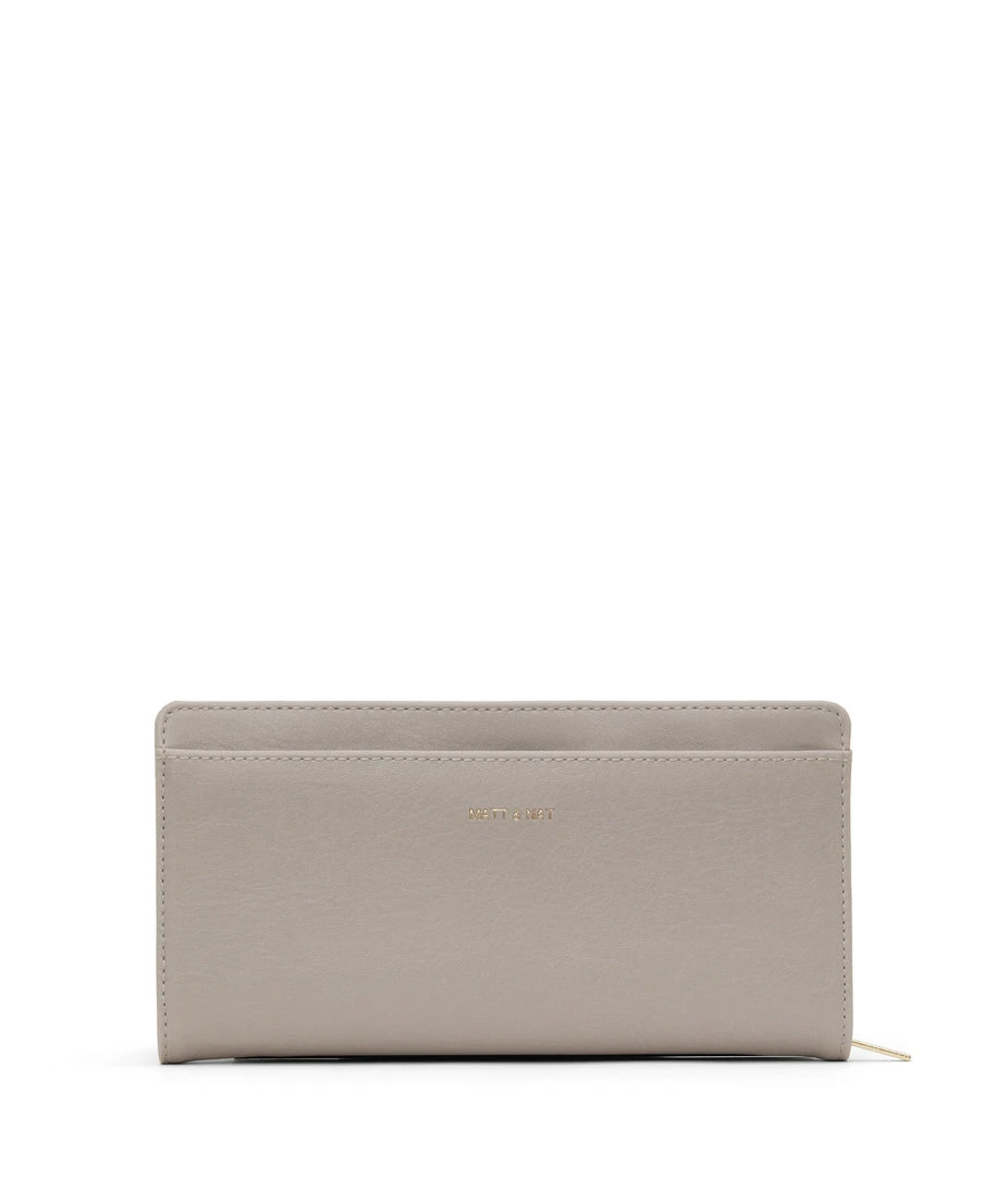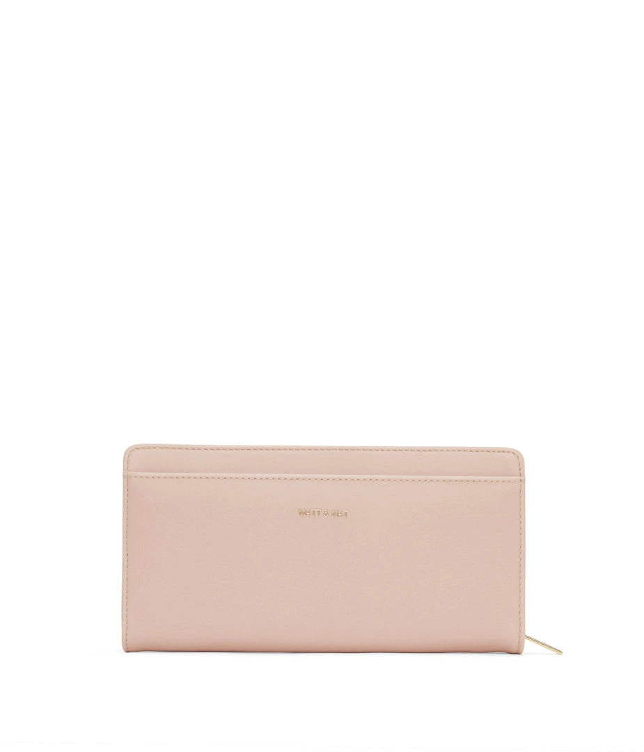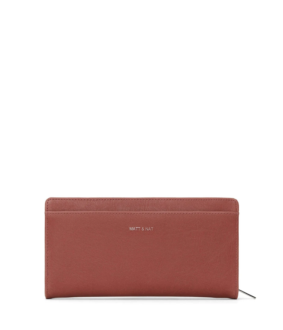 Zip-around accordion wallet with a zipper pocket on the back. Front slit pocket.